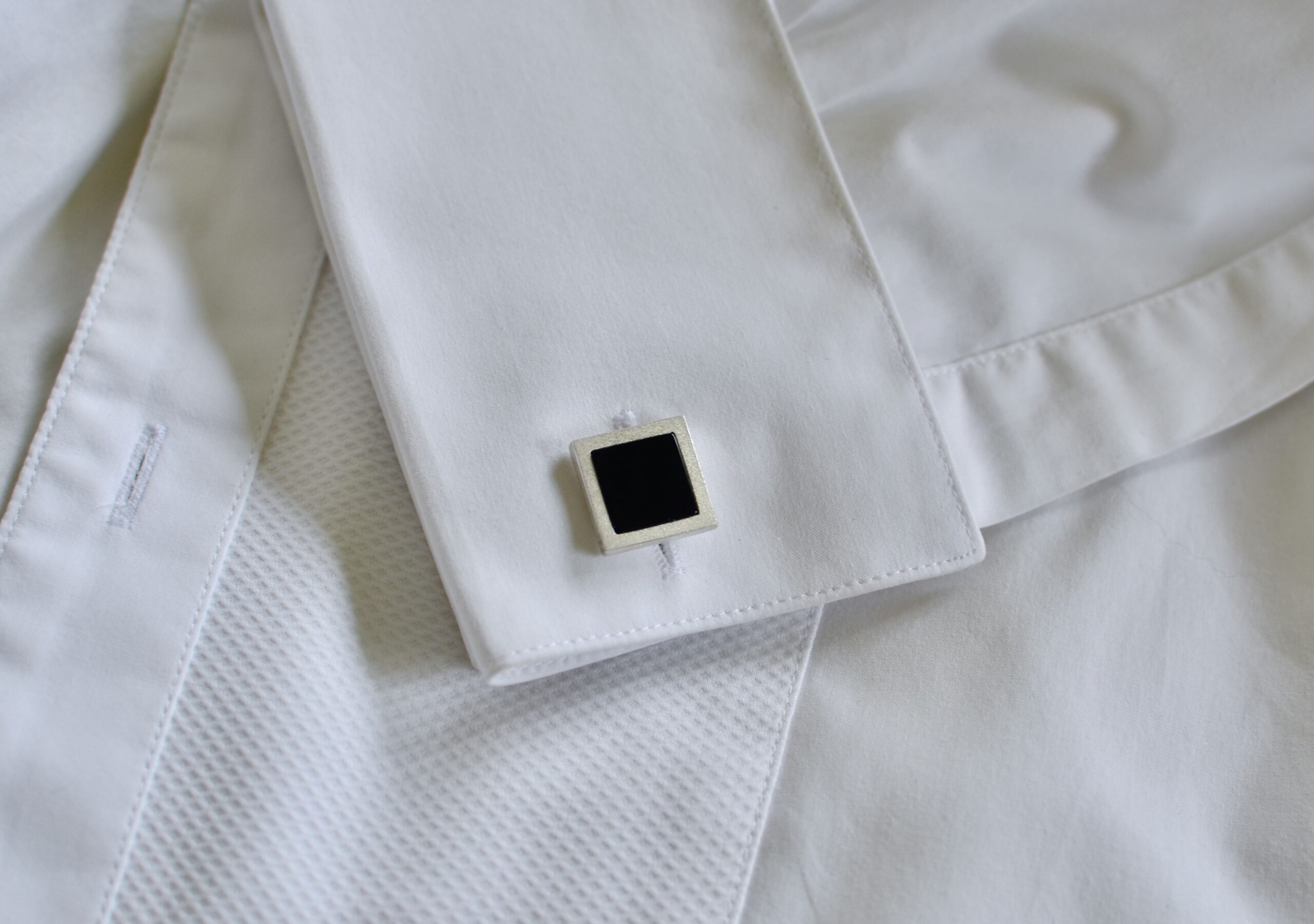 Rihveldatud servadega mansetinööbid. Hõbe (925) ja must ahhaat.